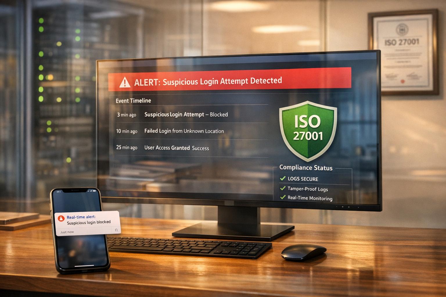 Une fois que vous avez défini des valeurs de référence dans le cadre de votre stratégie de surveillance, l'étape suivante consiste à aligner les alertes sur les contrôles de la norme ISO 27001. Les alertes en temps réel sont particulièrement pertinentes pour les contrôles A.8.15 (Journalisation), A.8.16 (Activités de surveillance) et A.5.24 (Gestion des incidents de sécurité de l'information). L'objectif ultime ? Faire en sorte que vos journaux ne soient plus simplement « activés », mais « prêts pour l'audit ». Cela garantit que les journaux sont inviolables et peuvent être rapidement consultés lorsque les auditeurs viennent frapper à votre porte.